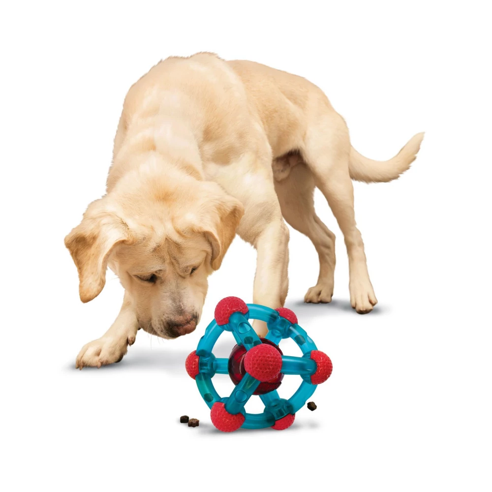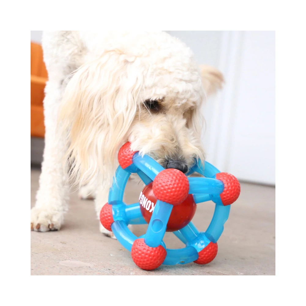 A külső oldalakon elhelyezett gömb alakú hangtompítók csendesebb játékot biztosítanak, így beltéri használatra is ideális. A széles tölcsérnyílás megkönnyíti a megtöltést, akár egy csésze eledellel is. A KONG® Rewards Tinker tökéletes választás a szellemi stimulációval kombinált etetési szórakozáshoz.