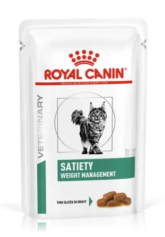 A ROYAL CANIN® SATIETY WEIGHT MANAGEMENT thin slices in gravy, vékony szeletek pecsenyelében nedves eledel a túlsúly csökkentésére összeállított teljes értékű diétás macskaeledel. Az eledel alacsony energiasűrűségű. JAVALLATOK: A SATIETY WEIGHT MANAGEMENT nedves eledelt a kívánt testsúly eléréséig alkalmazza.