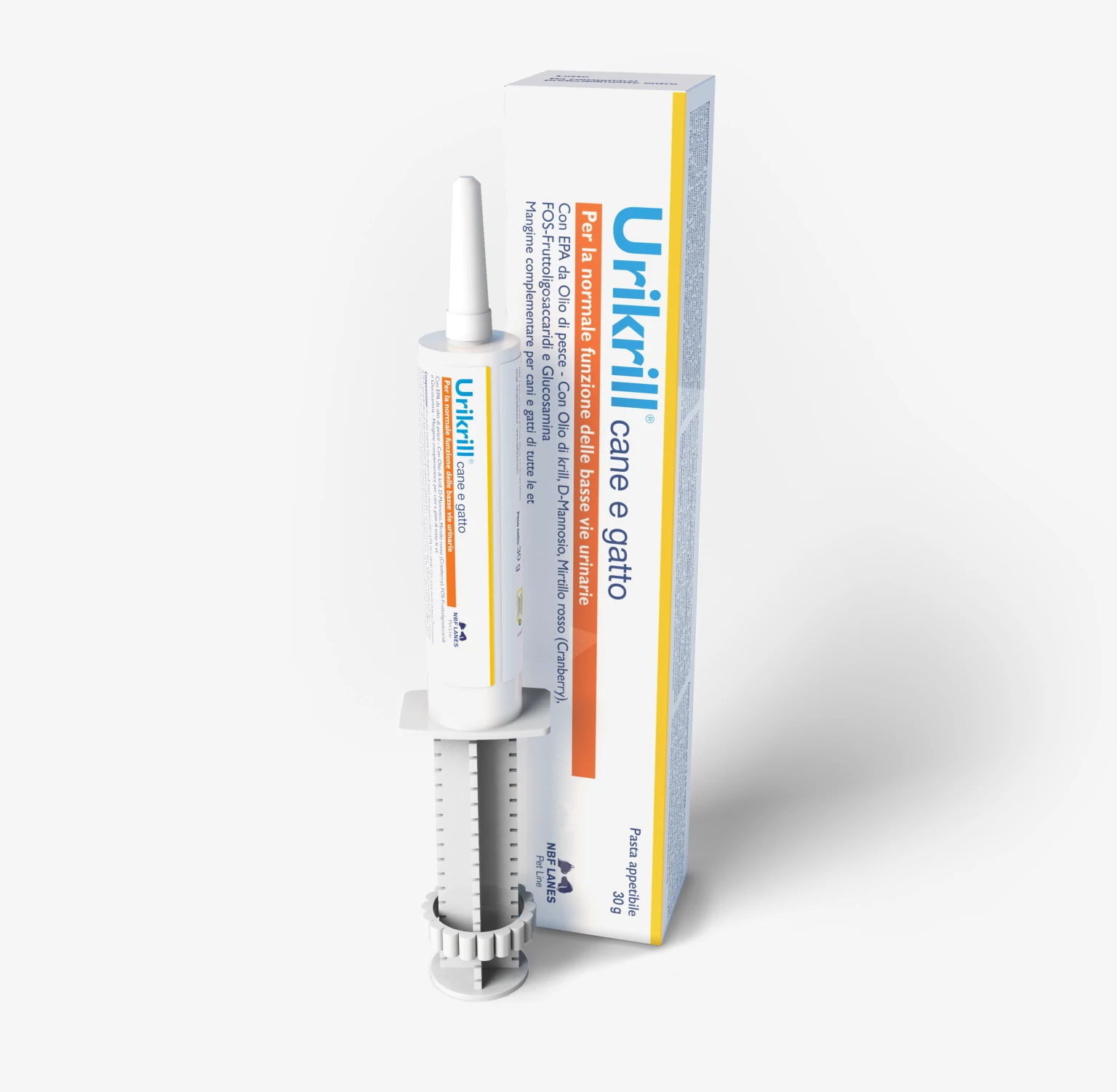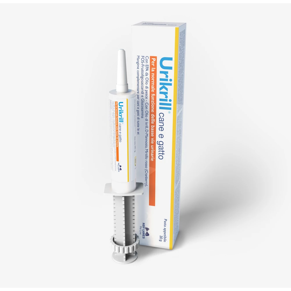 Urikrill Cane e Gatto egy kutyák és macskák számára készült ízesített paszta, amely támogatja az alsó húgyutak megfelelő működését, különösen macskáknál és kistestű kutyáknál.